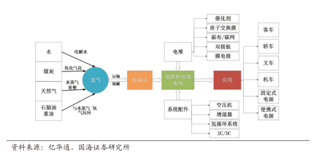 不同于特斯拉从车库里拉根线出来就能充电,氢燃料电池汽车需要加注氢气作为燃料。因此,氢电汽车必须以上游氢气环节为支撑,具体包括化工产业,氢气储运网络,以及末端的加氢站。