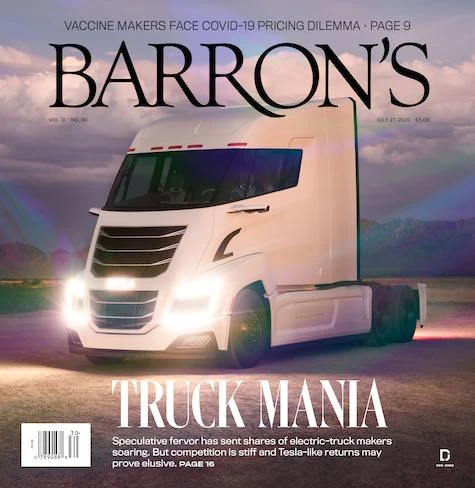《巴伦周刊》(barronschina) 原创文章,未经许可,不得转载。英文版见2020年7月26日报道“Electric-Truck Stocks Like Nikola and Workhorse Are Hot Right Now. Don’t Get Burned.”。