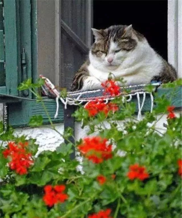 ▼2. 这只趴在窗台的胖猫咪也太富态了吧。
