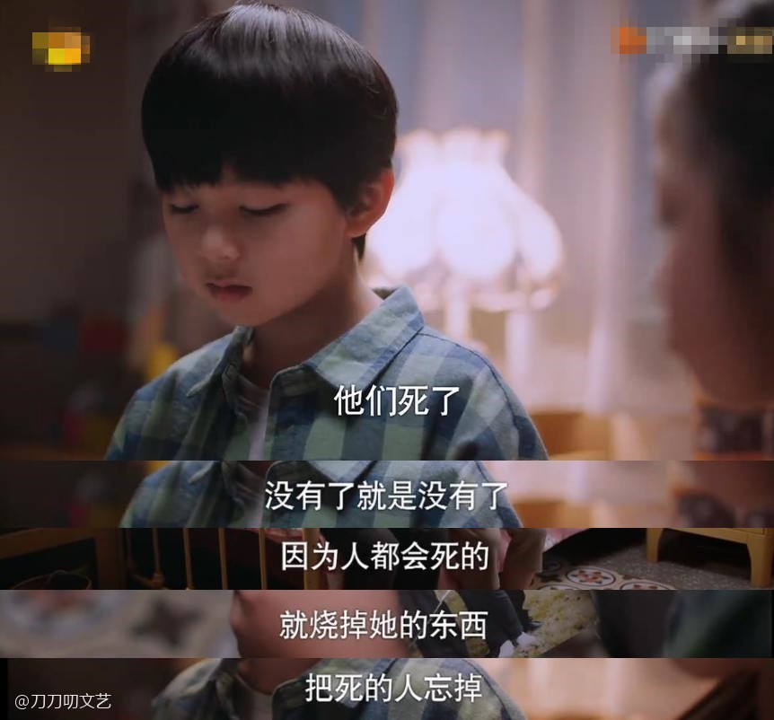 特别戳我的有两处,一处是凌霄被妈妈禁止想念妹妹,撕掉妹妹的照片,扔掉妹妹的玩具,于是他也“残忍”地告诉李尖尖:你妈妈不是去天上做仙女了,是死了,我们要把死了的人忘掉,把他们的照片烧掉。