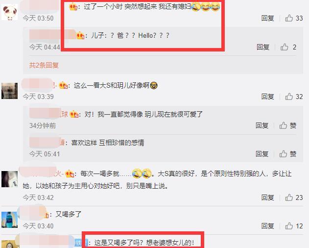 看到汪小菲思念完女儿,又不忘表白媳妇,可只字未提儿子,网友在说:“过了一个小时,突然想起来我还有媳妇。儿子:?爸 ??Hello???”还有网友说:“又喝多了”,“这是又喝多了吗?想老婆想女儿的!”“每次一喝多就……。大S真的很好,是个原则性特别强的人,多让让她”。