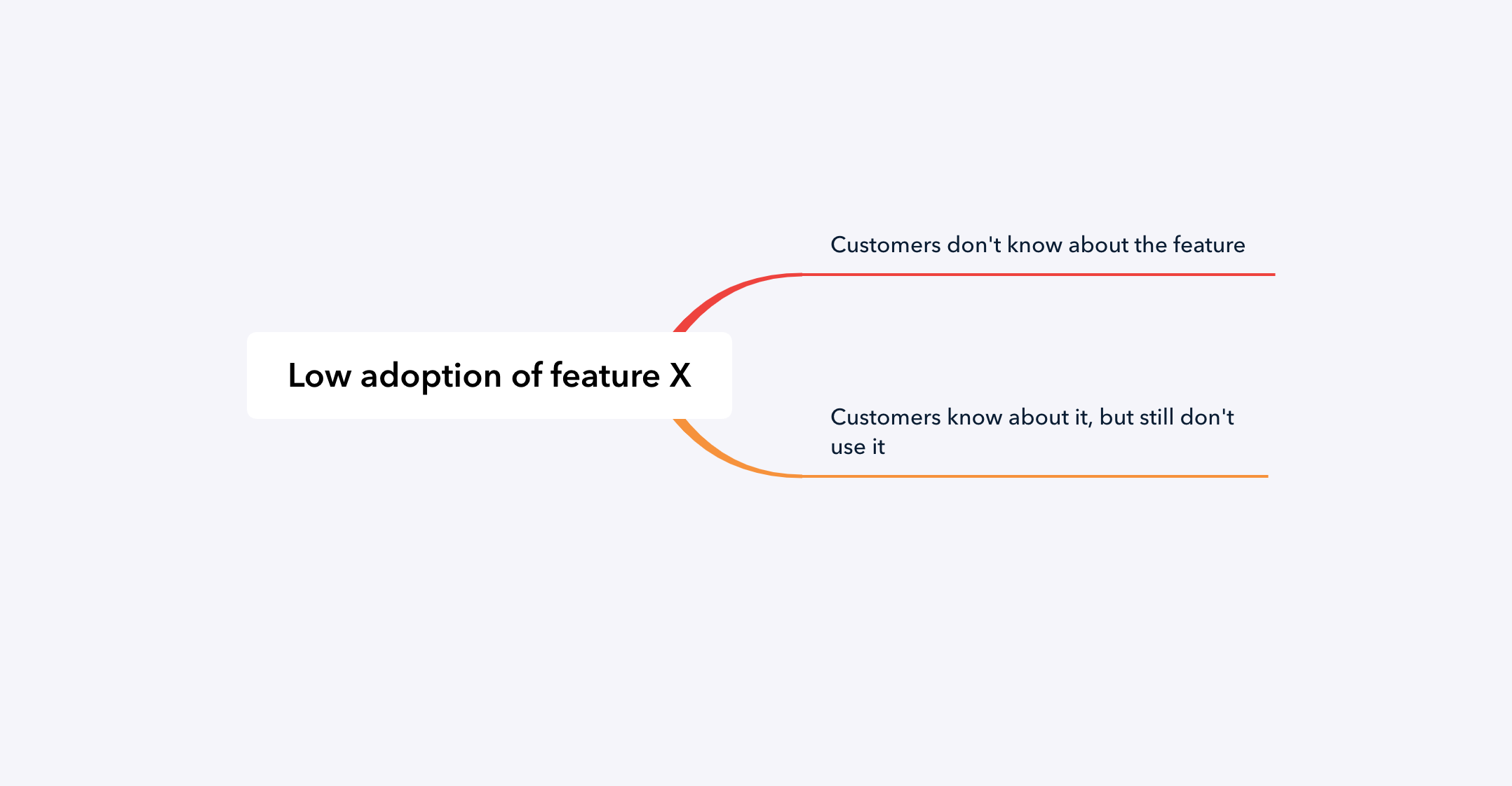 假如你现在正在开发一款产品,你发现许多用户都没有去尝试其中一项核心功能。基于此,你可以把“功能X的低使用率”作为出发点,以此提出潜在的成因分支: