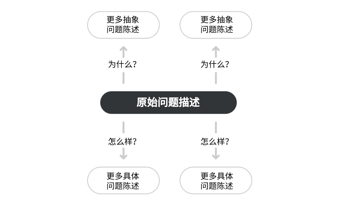 通过“为什么”,向上探索更多的抽象问题陈述,此举可以帮你从不同的角度来探索问题。