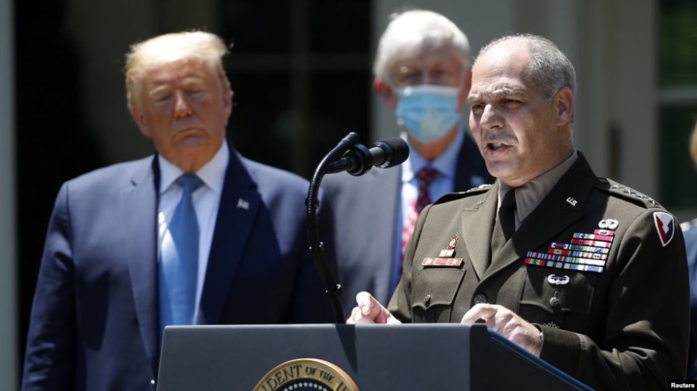 5月特朗普在白宫玫瑰厅宣布成立白宫“战速行动”小组,由葛兰素史克前高管蒙塞夫·斯拉维将担任这一行动的首席科学家,古斯塔夫·佩纳将军则担任行动的首席运营官。目标是在2021 年1月之前研制出一种疫苗并提供给美国民众。