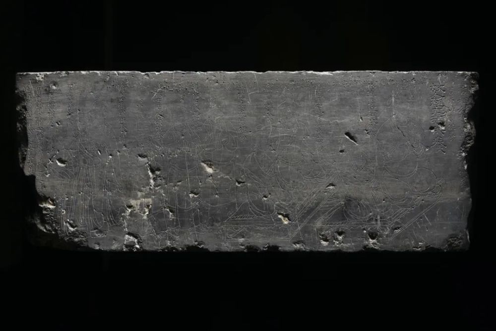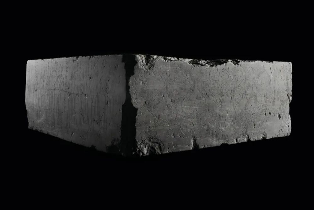 其中一件题刻“大唐皇帝供养、大唐皇后供养”的唐代经幢构件,可谓是国宝级文物,是继龙门石窟宾阳中洞、巩县石窟第一窟等之后,迄今发现的又一幅帝后礼佛图。不幸的是龙门石窟宾阳中洞的帝后礼佛图于20世纪30年代被文物商贩盗掘,且皇帝、皇后礼佛图被分别贩卖,前者入藏美国纽约大都会博物馆,后者流入美国堪萨斯市纳尔逊-阿特金斯艺术博物馆。在国内仅存的两幅礼佛图中,巩义石窟的帝后礼佛图制作于北魏中后期,这件唐代经幢构件可能是现存的唯一一幅唐代帝后礼佛图石刻,因此显得弥足珍贵。此经幢构件基座呈四方体,长110cm 宽105cm 高41cm,四侧面分别线刻帝后礼佛图、供养人及瑞兽图。整幅画面线刻有力,如同当时绘画中的铁线描,须发勾画准确精细,衣纹匀细而挺拔,表现手法熟练。皇帝雍容大度,魁伟庄重;皇后面相丰满,体态较丰腴。侍从身材较低,站立静候,帝后与随从形成强烈对比。皇帝、皇后深沉庄重,形态、精神与侍从们有明显区别。从题款供养人中可知,幢主为清信士桓纳言。下面我们就来认识这件国宝级文物。