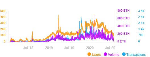 整体而言,NFT 总成交达到千万美元的只有 CryptoKitties(3700 万美元)和Decentraland(2400 万美元)。整个市场上售出 NFT 数量将近 500 万个,总成交额超过 1 亿美元。