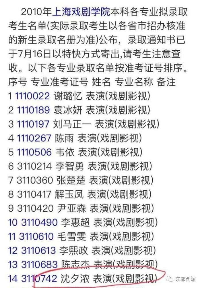 那一年上戏录取名单中,也可以查到钟楚曦是民间舞专业。