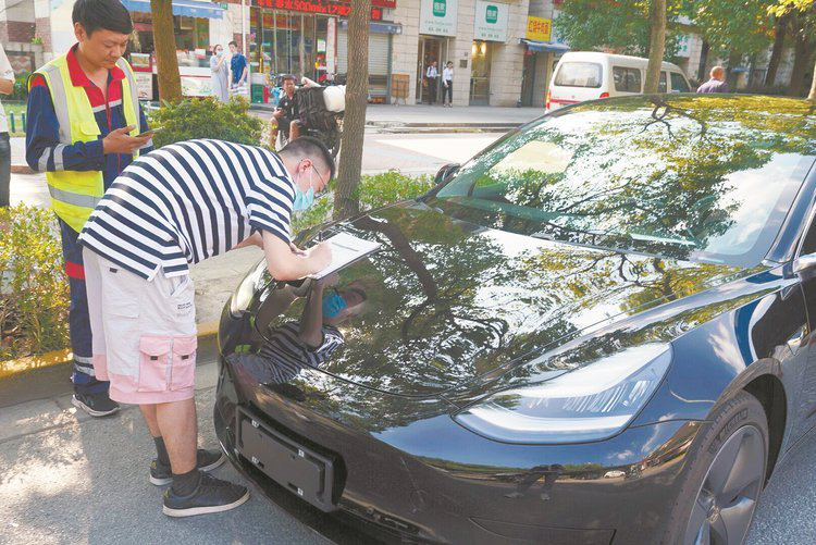 武汉拼多多团购车主正在签字提车。(程鄂生 摄)