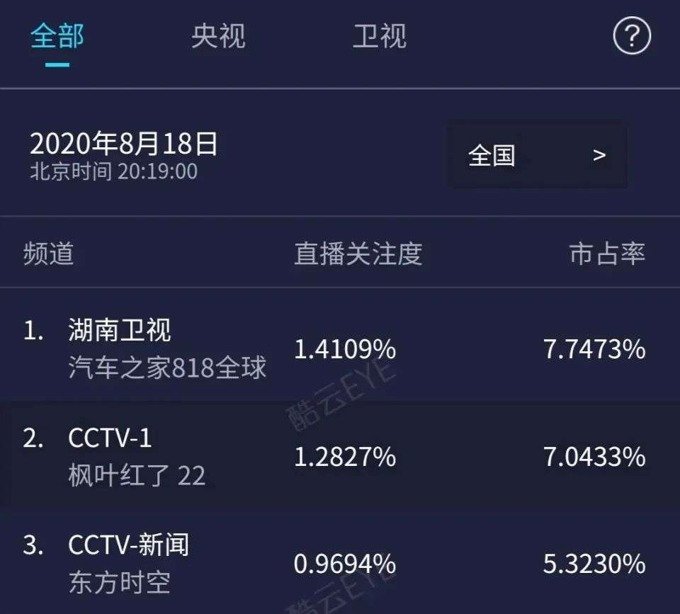不得不承认的是,湖南卫视在打造全新赛道上自有一手,十分独到,但是,受密集的定制晚会影响,对于黄金档剧场是不小的考验,尤其需要面临固定收视群体的流失,这一必然会导致的严重后果。或许也正因为如此,湖南卫视这次在汽车晚会直播前,还特意播放了十分钟左右的《以家人之名》,以缓解观众心中追剧之痒。