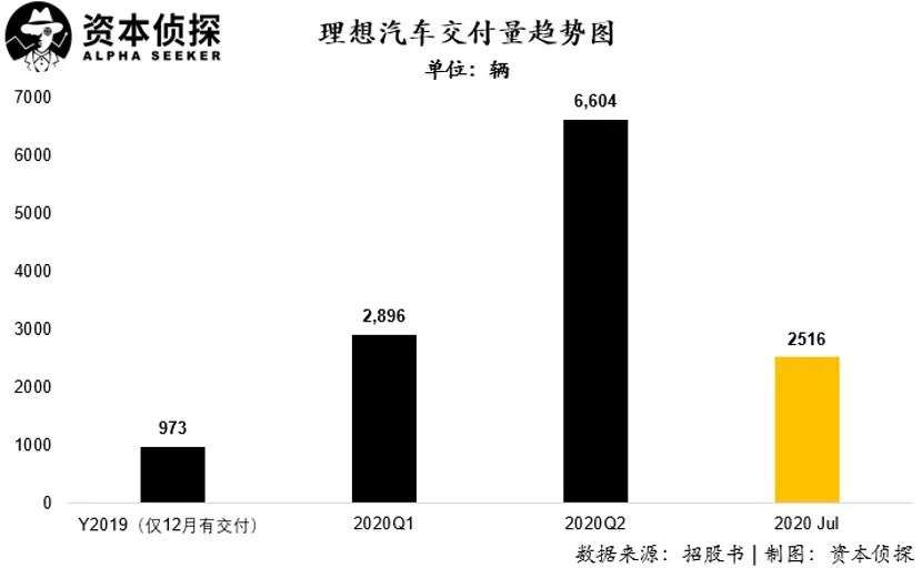 自去年12月正式交付以来,理想汽车交付数量呈现快速提升状态。剔除今年一季度新冠疫情影响,理想ONE在二季度平均单月交付数超过2200台,而进入到七月份,公司单月实现交付2516台,与蔚来的3533台相差约1000台。