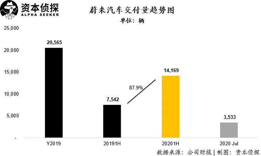 而相比较去年同期,尽管在一季度受到了疫情的影响,工厂停工停产,车辆无法线下交付,但进入二季度复工复产后,蔚来的整车交付实现了爆发式增长。公司今年上半年总的交付数量相比去年同期提升87.9%,而仅二季度则实现同比增长191%,交付数量达到10331辆。
