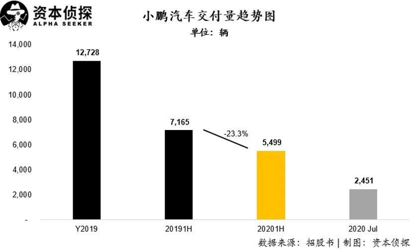 而进入2020年,随着理想汽车成功实现量产交付,小鹏G3车型在产品力上的不足被进一步放大。与理想汽车和蔚来汽车在2020年上半年高歌猛进不同,小鹏汽车在今年上半年的交付量反而大幅下降。公司今年上半年仅交付整车5499台,同比减少23.3%,而这一数量几乎仅是理想汽车交付数量的1/2,和蔚来汽车交付量的1/3。