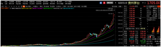 图1:截至2020年8月18日的茅台月k图。来源:Choice