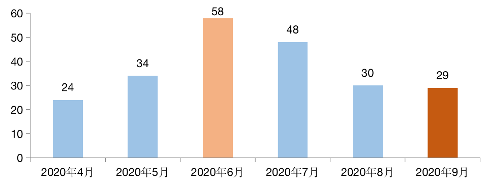 CRIC监测数据显示,9月份超百轮竞拍地块仅有29幅,较6月百轮竞拍地块数量腰斩,这也是自6月峰值之后超百轮竞拍的地块数量连续3个月下滑。总体来看,溢价率走低与高竞拍轮次地块数量减少保持一致,9月份反映土拍整体热度的指标均明显下滑。