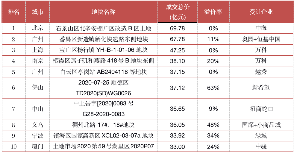 9月成交总价最高的10宗地分别来自9个城市,较为分散,意味着热点城市土地供应中优质土地的比例进一步减少。