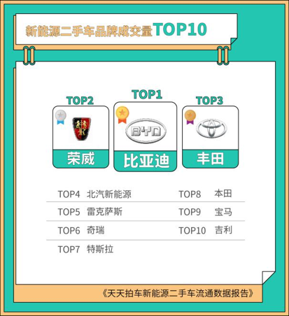 比亚迪凭借秦、唐、宋等多款市场保有量较大的车系,位居新能源二手车品牌成交量排行榜之首,荣威和丰田分别位列第二、第三名。新造车势力规模化置换周期尚未到来,均未进入新能源二手车成交品牌前十名。