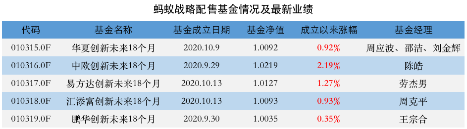 虽然这5只基金褪下了蚂蚁战略配售基金的“光环”,但持有人的退出与否不仅在于是不是能成为蚂蚁的股东,还要综合考量基金的赚钱能力。毕竟5只创新未来基金的净值主要还是取决于剩余90%品种的配置。