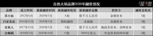 10月28日,由百草味创始人蔡红亮操刀的自热食品品牌“自嗨锅”宣布完成逾5000万美元C轮融资,估值5亿美元,距离其上一轮超亿元融资仅过去了5个月时间。白家食品更是在今年7个月内完成了3轮融资,金额超过3亿元,高瓴资本参与了其B轮融资。