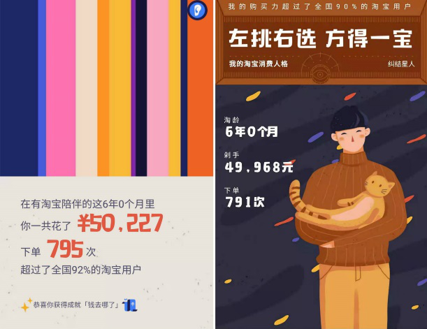 这里我们以近期发布的三款年终报告——淘宝人生账单、百度沸点系列报告、豆瓣年度书影榜单,进行具体阐述。