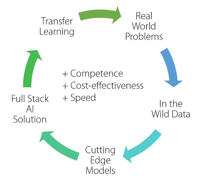 为了增强客户能力,Element AI利用其独特的功能来帮助其客户处理和清理其大型专有数据集;在必要时应用GAN和类似模型来丰富和增加用于培训和分析的数据;利用其工具集可以快速训练,验证和改进可以与实际流程「一致」运行的全栈AI解决方案。