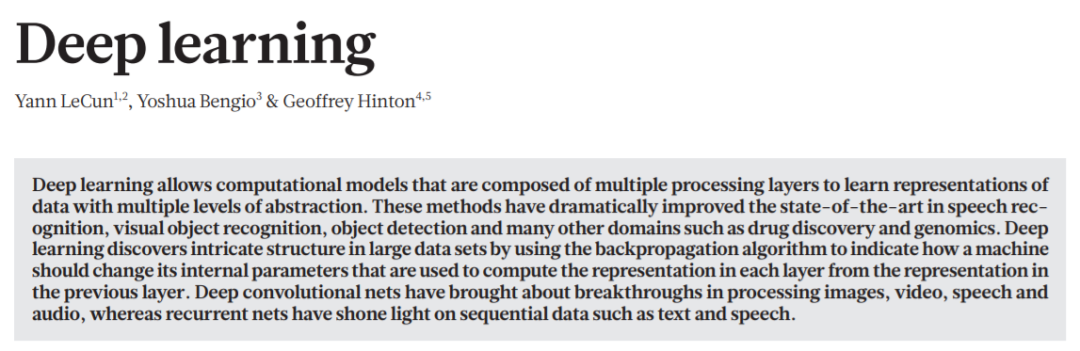 三人于15年共同发表在Nature上的「Deep Learning」更是获得了3万多次的高引用。
