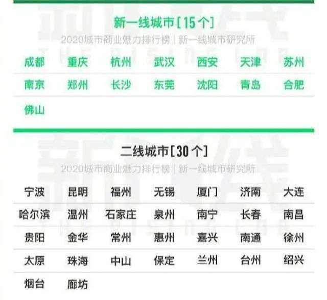 在2020年公布的新一线城市榜单,合肥和佛山首次取代了宁波和昆明,进入新一线城市名单。