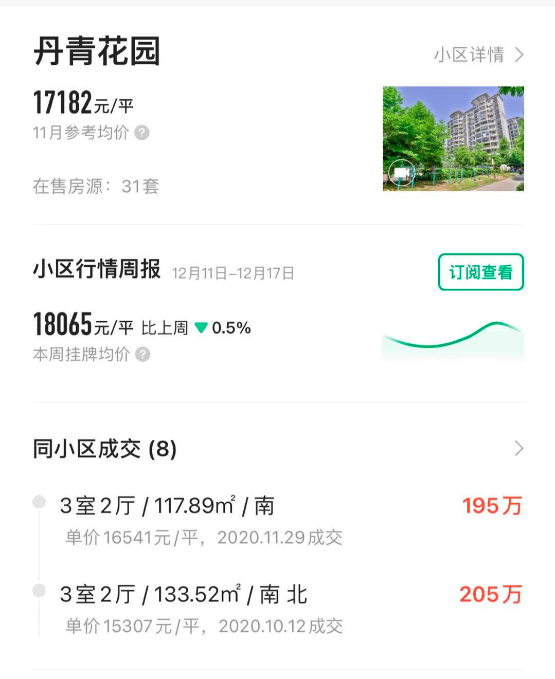另一边,学区不强却处在核心位置的次新,比如政务的丹青花园,涨幅依旧较弱。