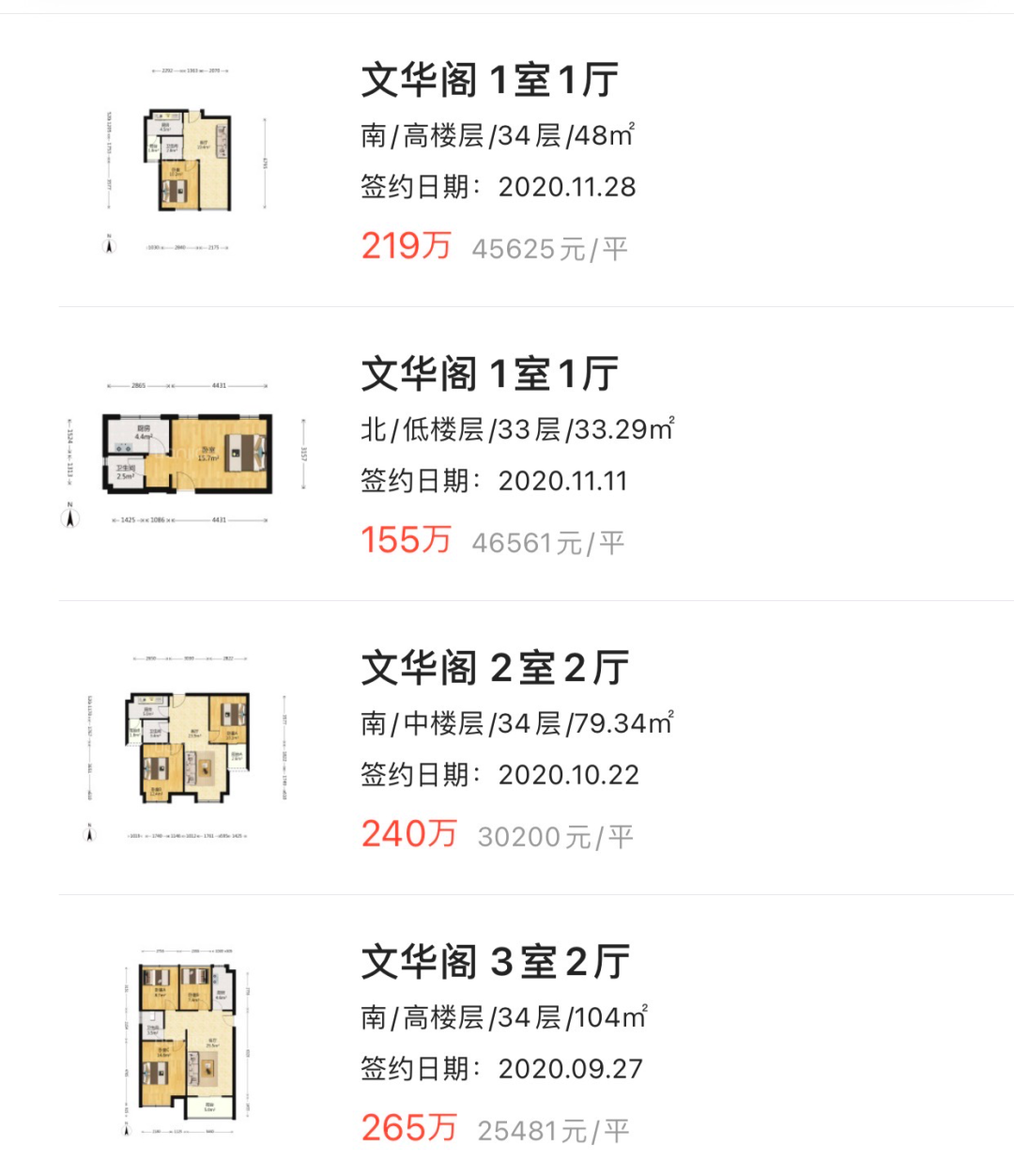 更夸张的是,文华阁最新一套单价4.5w的房源一挂出,被浏览2400余次,成交周期11天。最终在未带看的情况下直接签约。