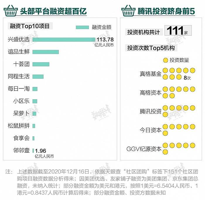 截止今年12月,据界面新闻不完全统计,社区团购项目明确公开的融资金额已达到165.3亿元,比去年高出100多亿。自“社区团购”2014年出现至今,38家社区团购项目已累计融资近249亿(部分融资金额未公开)。