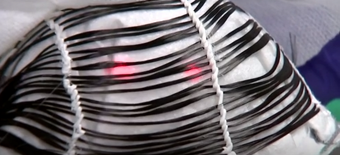 从外形来看,这款口罩形似普通 N95 口罩,但内层均匀分布碳纤维。通入电流后,口罩可以加热至 70 摄氏度,从而破坏新冠病毒活性。