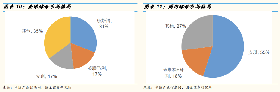 相对于国内,安琪酵母在国外“施展拳脚”的天地要大得多。全球市场,乐斯福为第一大酵母企业,市占率31%,英联马利和安琪酵母各占17%,位列二、三位。