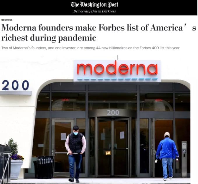 但迄今为止,在疫苗领域最具实力的美国一直被批承诺太少也太晚,除了拜登政府的说多做少,美国制药公司的唯利是图和为富不仁也遭痛批。各方人士认为,美国政府的不作为无异于和制药商串通一气。矛头首先指向了通过“众筹”研发出疫苗却不想分享的莫德纳公司。