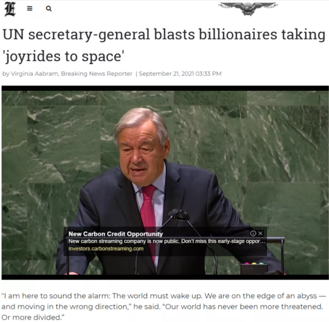 “亿万富翁在太空兜风,地球上却有数百万人在挨饿”