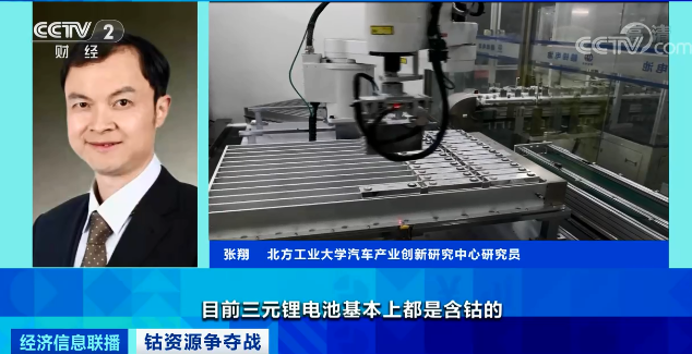 北方工业大学汽车产业创新研究中心研究员 张翔: 目前三元锂电池基本都是含钴的,它的装机量在新能源汽车产业还占到“半壁江山”;特别是对续航里程、整车性能要求高的高端车型。