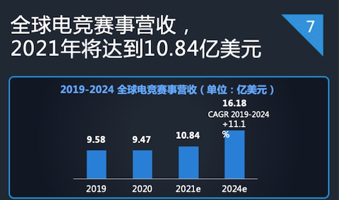 据《2021年中国电竞运动行业发展报告》数据,2021年全球电竞赛事营收将达到10.84亿美元,到2024年这一数字将超过16亿美元。电竞赛事展现出的吸金力,无疑也会对传统体育赛事产生影响,从而有可能进一步加快数字体育与传统体育的融合。