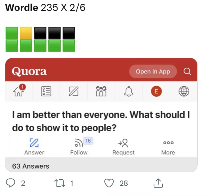 (第二次就猜中正确答案=“I am better than everyone” 图源 Twitter)