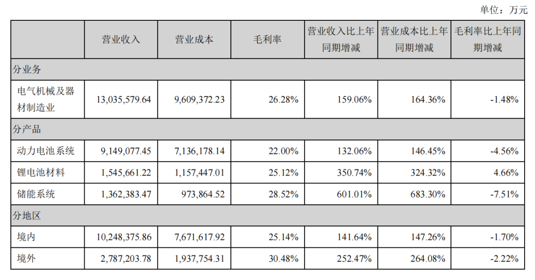 宁德时代业务毛利率(图片来源:2021 年财报)