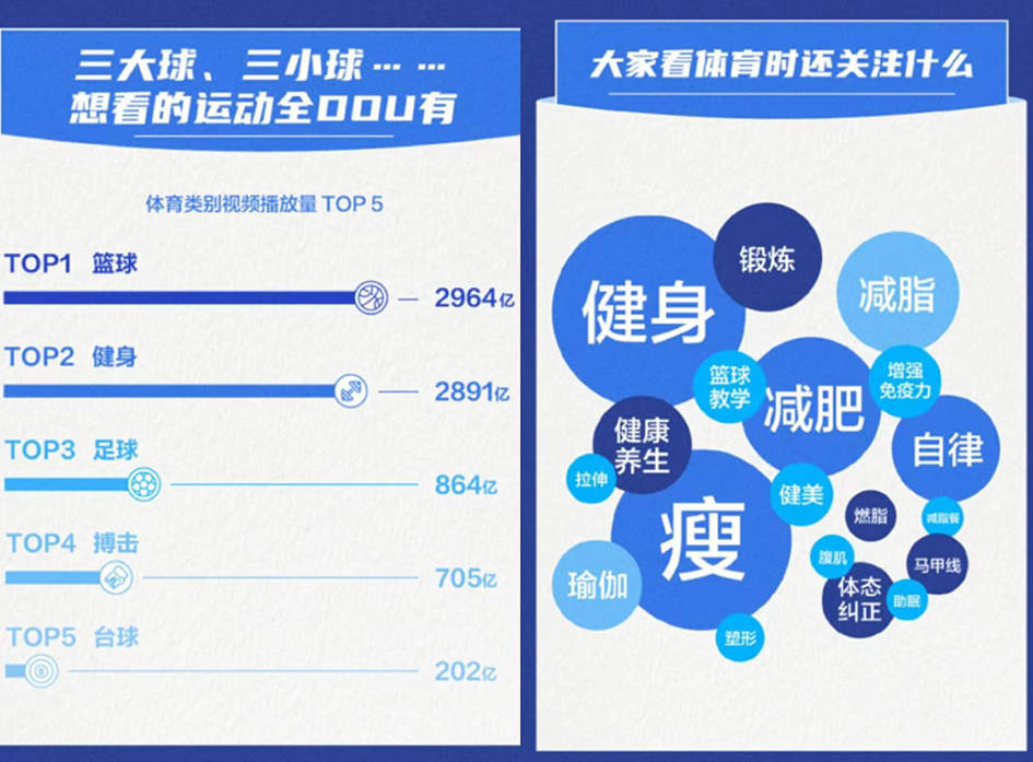 眼看着这片蓝海越来越诱人,不少泛内容平台都开始倾斜资源,扶持健身短视频内容,直播健身的渗透也进一步提高,根据抖音的《2021体育内容报告》,2021年抖音运动健身视频数量同比增长134%,创作者数同比增长39%,健身类主播涨粉同比增加208% ,直播收入同比增加141%。