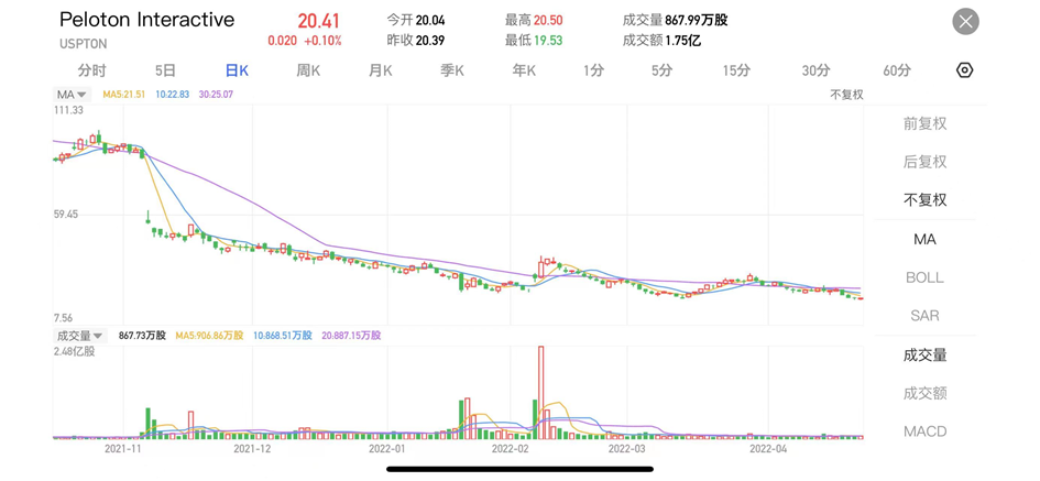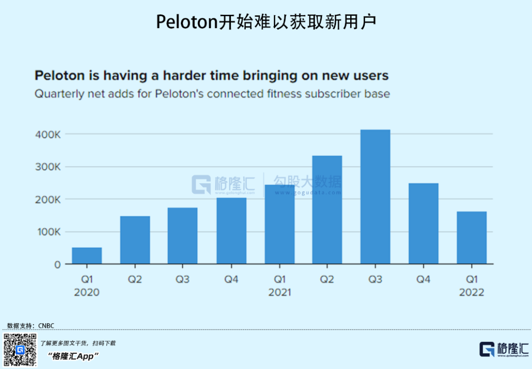 然而,由于美国疫情管理政策放开,线下健身房回春,公司对市场需求过于乐观,竞争内卷严重,经营问题频发,2022财年二季度净亏损为4.39亿美元,业绩不如意,等待它的便是股价大跌,甚至出现了裁员、股东要求出售公司、高层辞职等困局。
