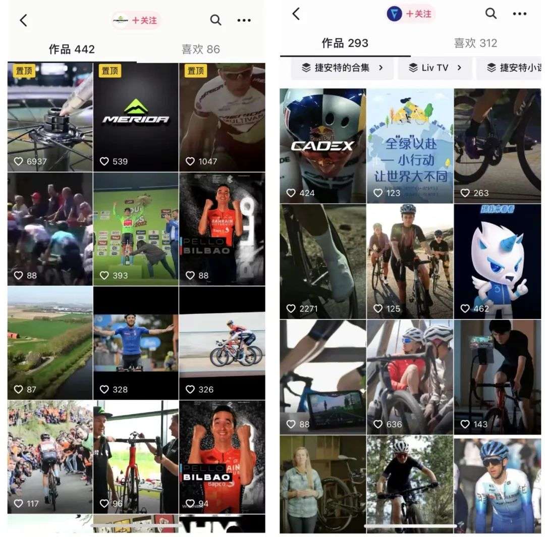 △捷安特、美利达均已开通抖音号推广骑行文化,图:氢消费