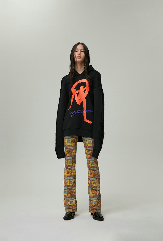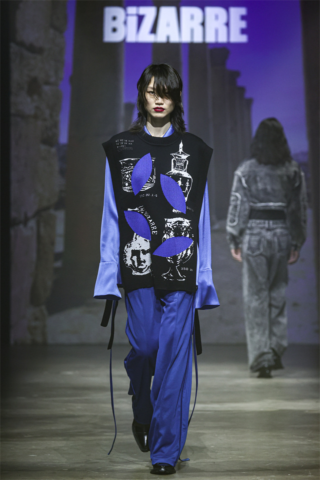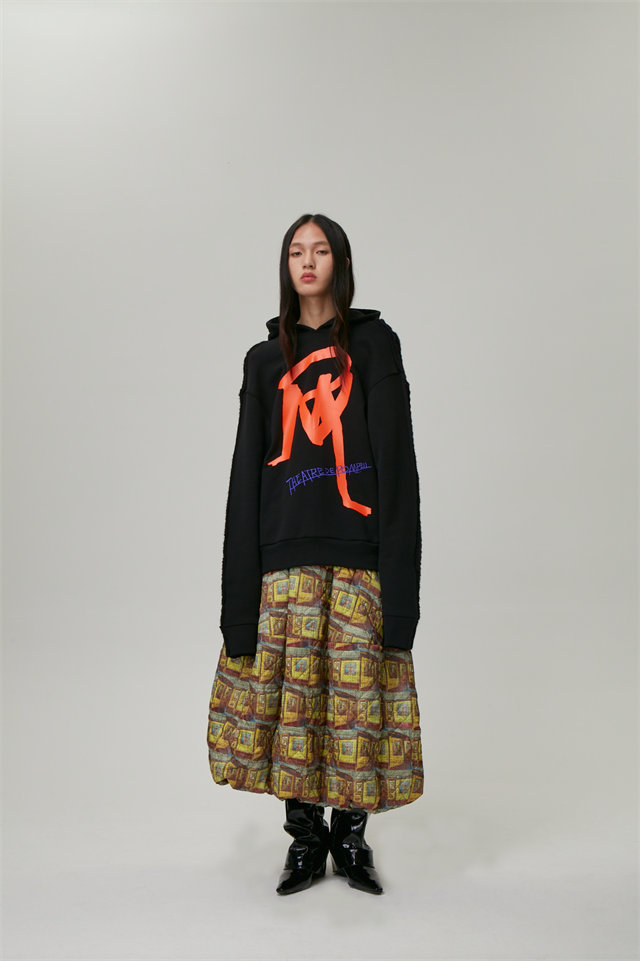 此外,宽松的毛衣&卫衣搭配长裤半裙等略显中性的搭配是BiZARRE经典LOOK,大面积图案及夸张的撞色,就像是现实世界的自己和内心世界的自己的抗衡。松垮的大廓形的结构设计,没有束缚感的穿着体验也正是对自由精神的向往。