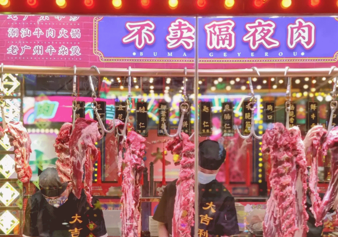 但在其刚开的一家新店内,“不卖隔夜肉”这一卖点被着重强调,同时各种牛肉食材的吃法也被详细介绍。