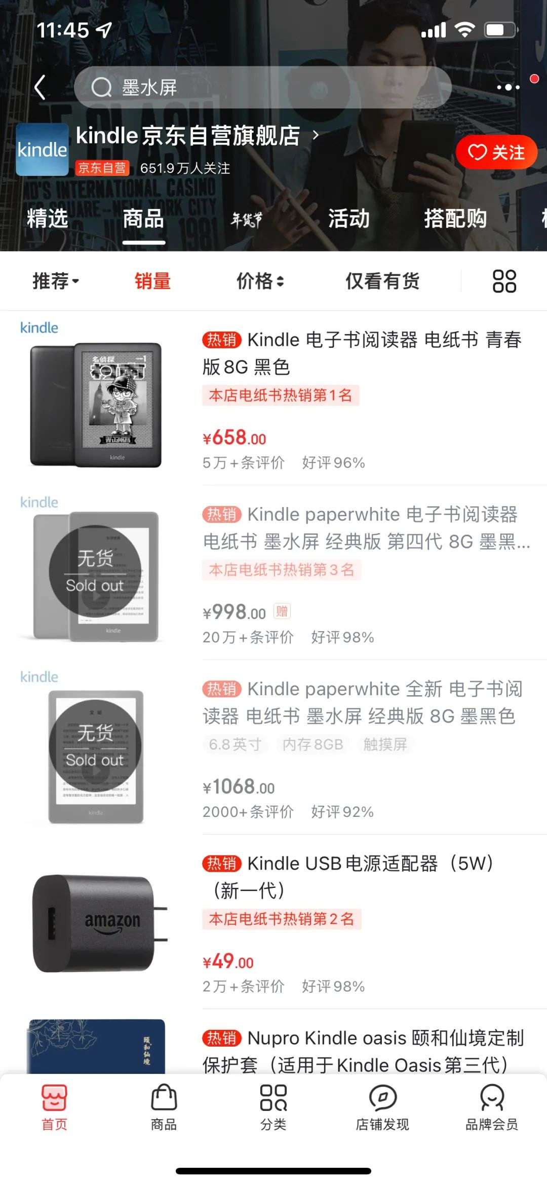 仿佛是回应这个名单,两周之后,网友忽然发现,京东 Kindle 官方店出现大面积无货情况,而淘宝官方店早已于去年 10 月关门大吉。