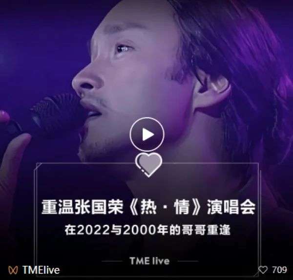 可见,在线下大型演唱会按下暂停键后,凭借着周杰伦自身的号召力,让这场线上演唱会受到了更多的关注。但这其实并非TME live首次采用直播“演唱会录像”的形式,此前在4月1日,张国荣《热·情》演唱会超清修复版也在TME旗下音乐APP、微信视频号等平台进行直播。