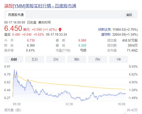 昔日美股上市时,满帮首日收涨超13%,市值升至233亿美元(约合1585亿人民币),而如今截至2022年5月17日收盘,满帮报6.450美元每股,市值为71.49亿元,缩水了三分之二。