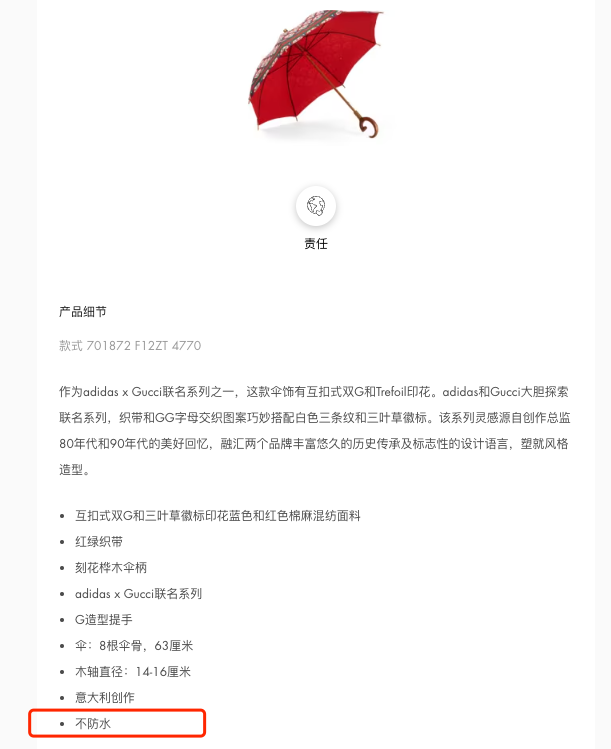 所以Gucci的伞,你可以说它不实用,因为的确很不实用;
