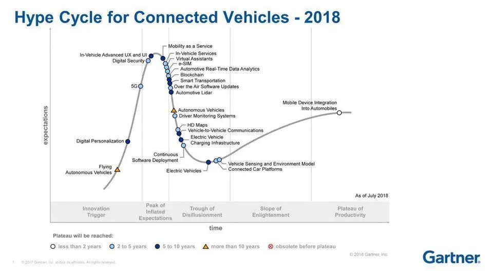 Gartner《自动驾驶汽车陷入幻灭的低谷》